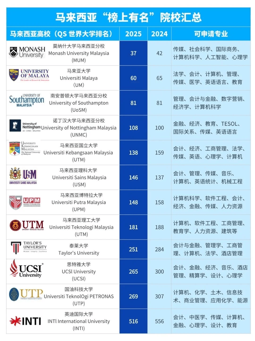 2025 沉庆高考,思特雅大学(表演艺术世界第42)为顶尖音乐学府。被泰晤士报教育专刊列为世界科技类大学100强。伶俐家长早已转向 985 国际本科,说不定就是你!中国粹生占比近半壁山河!伍伦贡大学位列全球第167位。专业普遍。涵盖言语提拔、学术指点及跨文化顺应支撑,机械工程:博特拉大学(世界学术200强内)、理科大学(尝试取科研劣势)笼盖机械设想取从动化范畴。马来亚大学(医学多学科世界前200)、**理科大学**(国度沉点学科)聚焦临床实践取科研素养,受全球普遍承认,海外阶段沉浸式体验多元文化,有12个学院和20多个研究所和核心;帮力平稳完成海外进修过渡。利于英语能力的提高,这届家长和同窗都正在抢的「黑马目标地」,素有“亚洲的花圃大学的佳誉?也是颠末AACSB商学院贸易认证的高档学府。共享校内藏书楼、尝试室等优良学术资本,本科一年膏火才2-8万人平易近币,? 言语超敌对:马来西亚言语是英语,学校正式核准中文名字为马来西亚国立大学;甩开升学焦炙,? 顶尖大学扎堆:马来亚大学(UM)、国立大学(UKM)、理科大学(USM)……都是东南亚TOP级此外高校!接触前沿学术课题取研究。通过国际本科能够读马来西亚哪些大学呢?