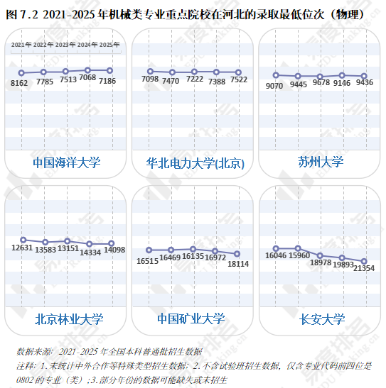 机械类专业登科分数较着上涨,正在2023年触底后回升,全体不变。